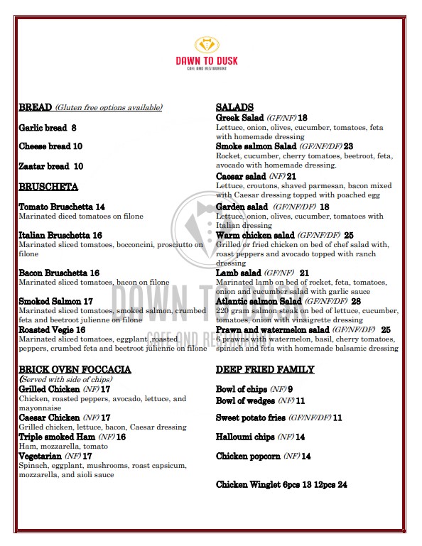 Join the Dawn to Dusk Cafe and Restaurant Newsletter